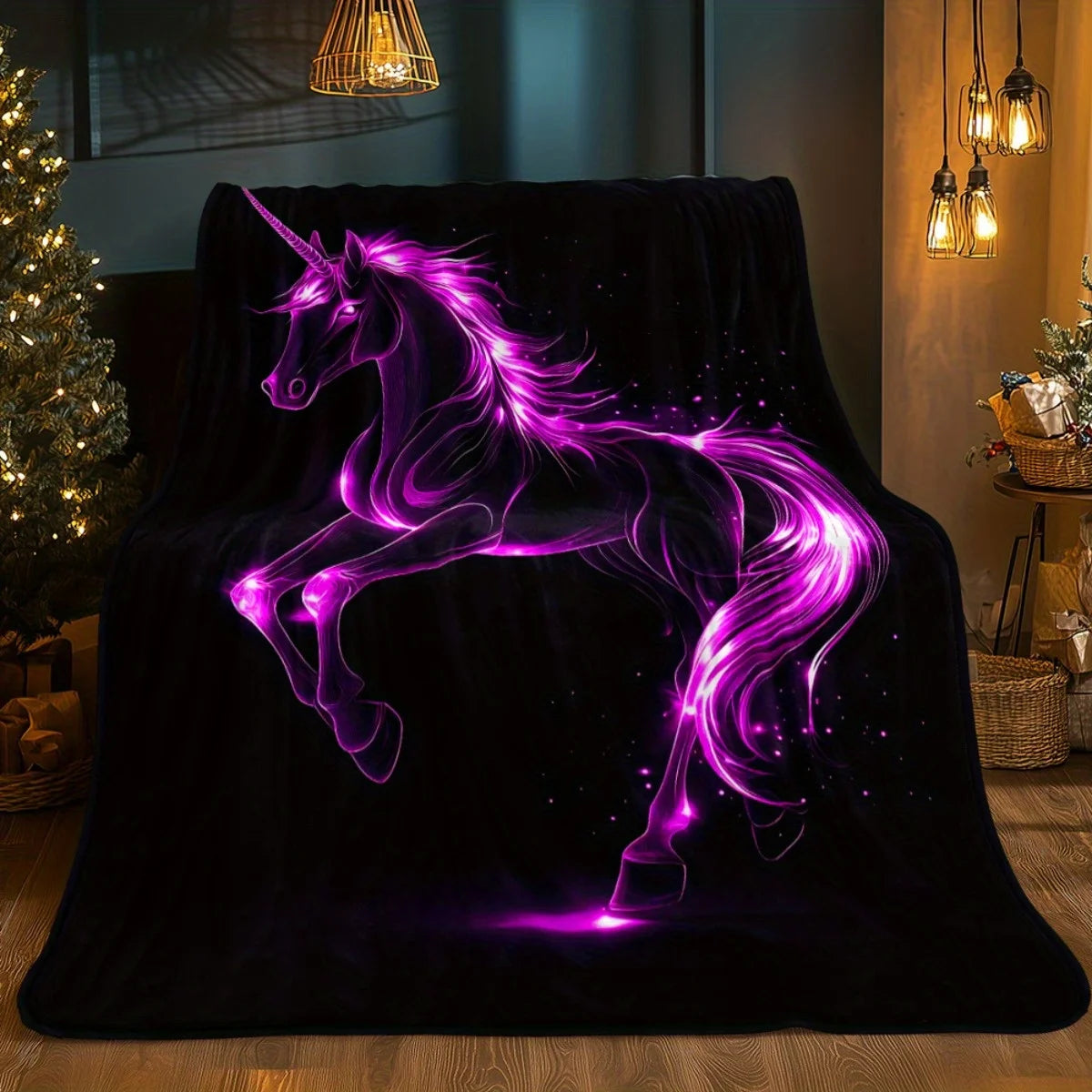 Neon Glow Black Unicorn Blanket