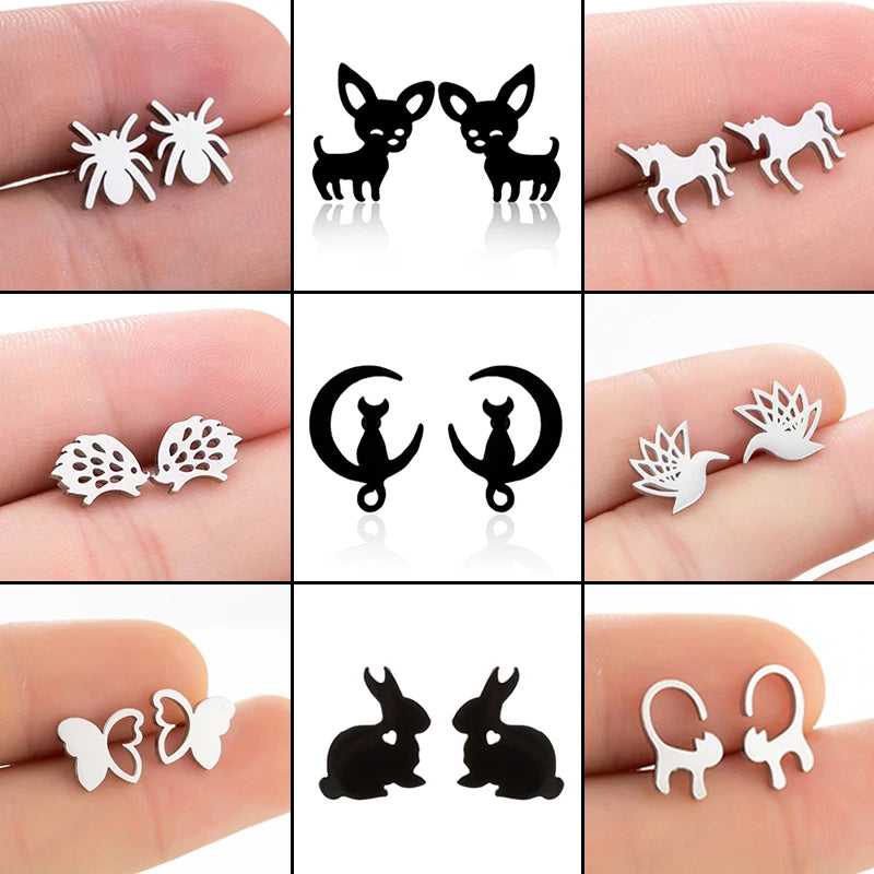 Black Matte Unicorn Stud Earrings