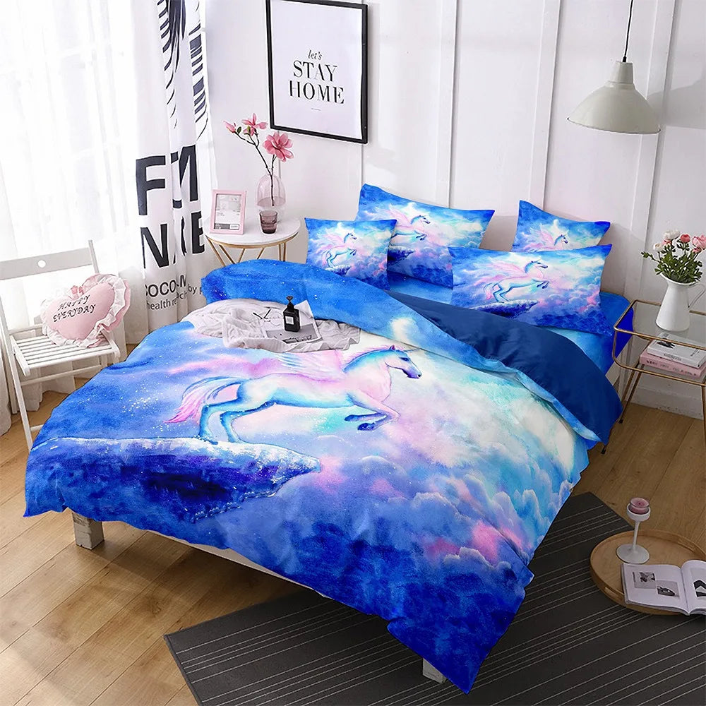 Blue Sky Rearing Unicorn Bedding