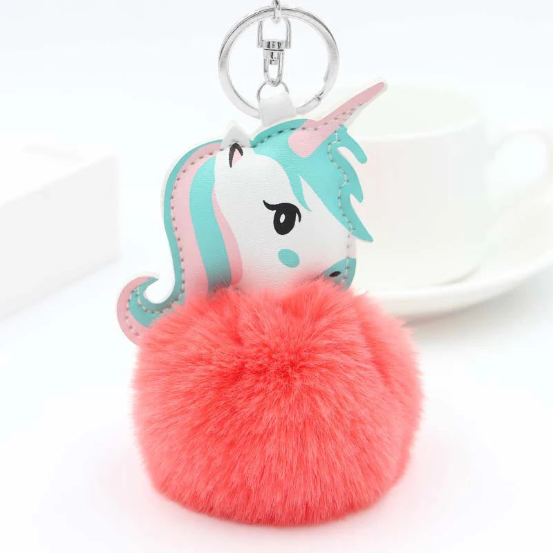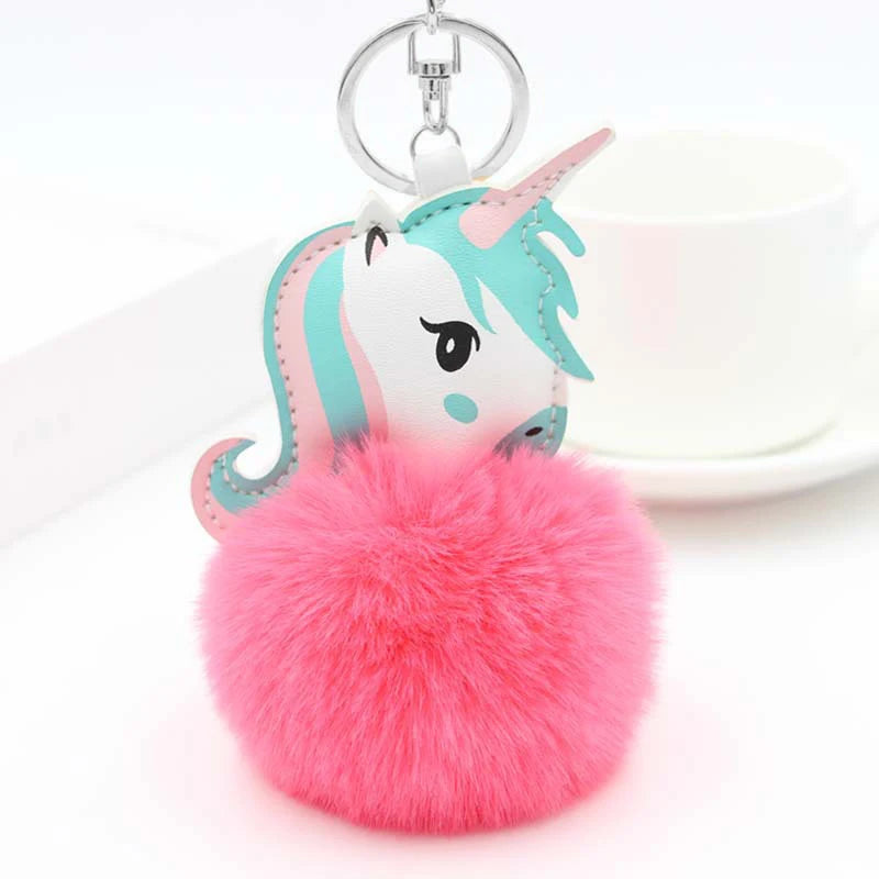 Fluffy Blue Unicorn Keychain