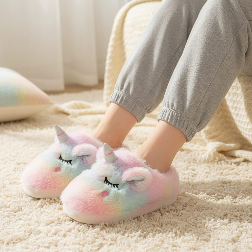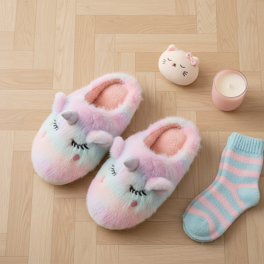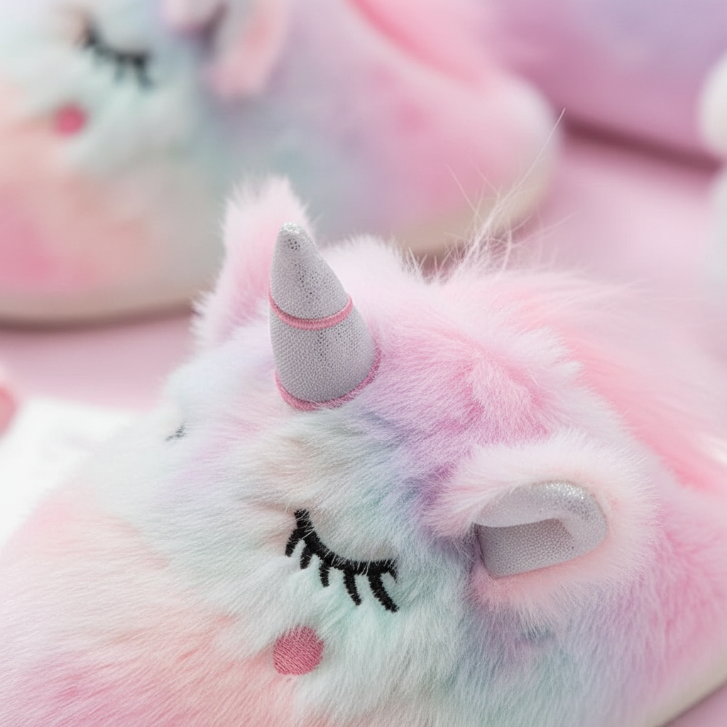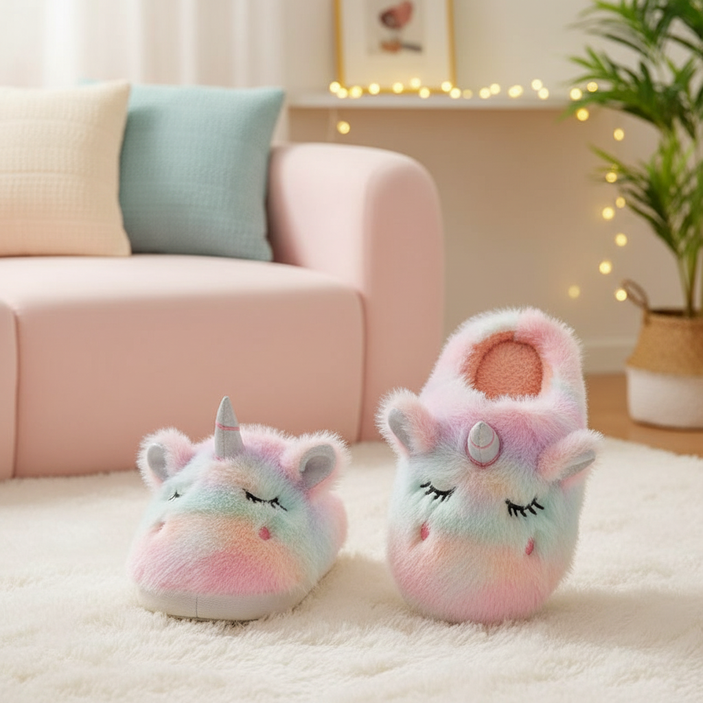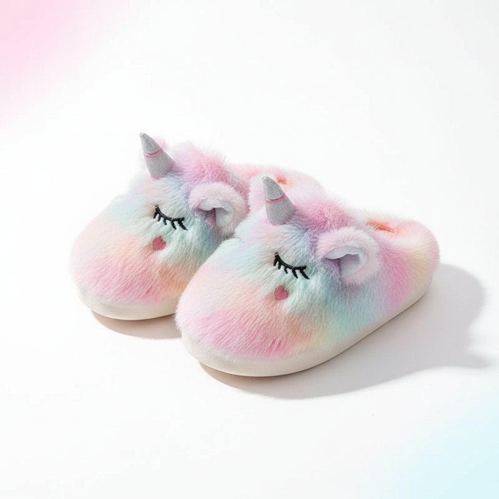 Fuzzy Pastel Unicorn Slippers