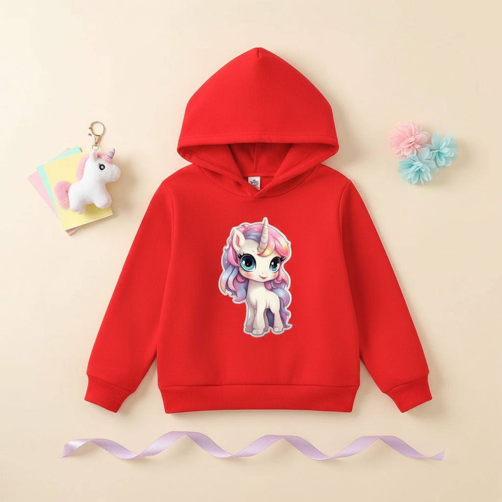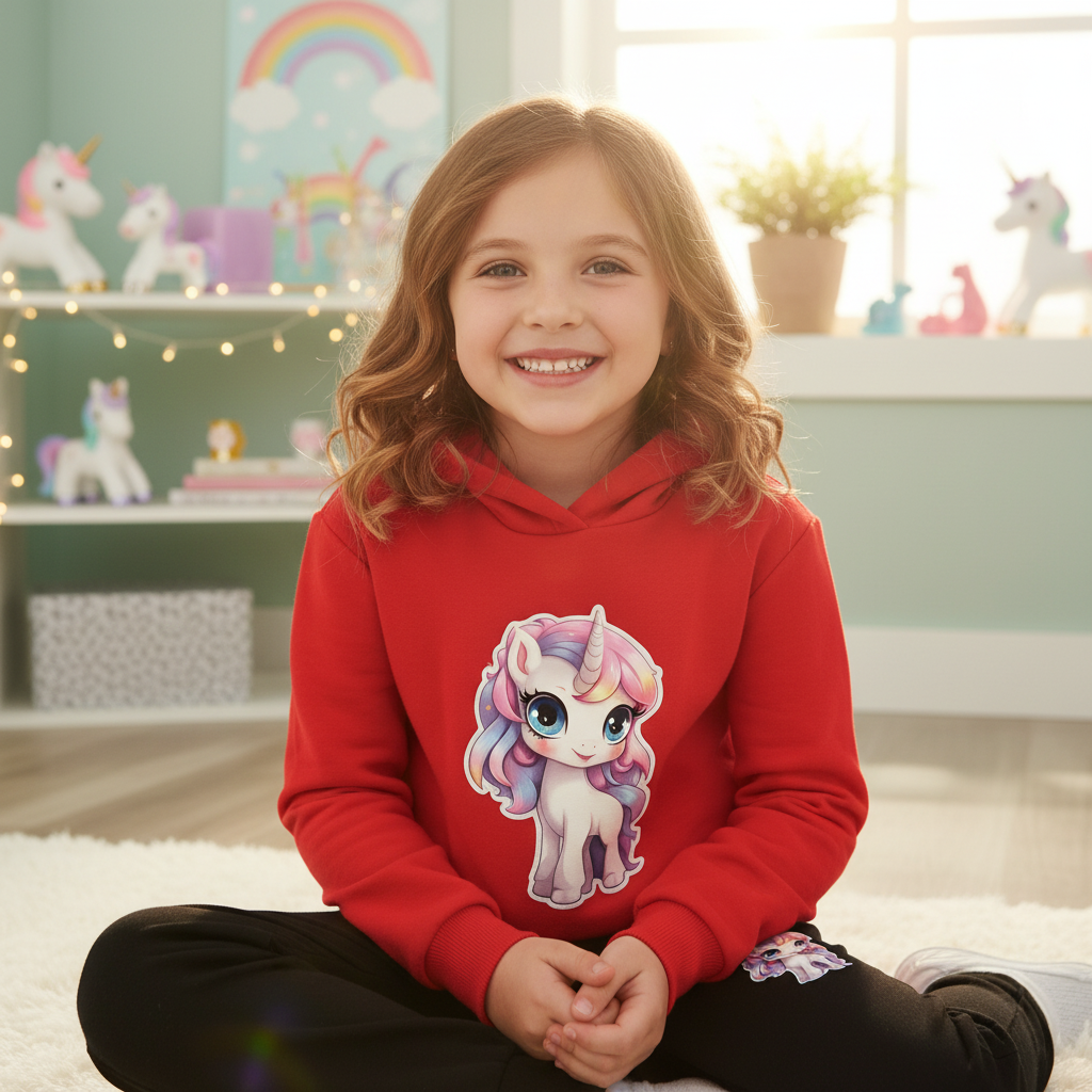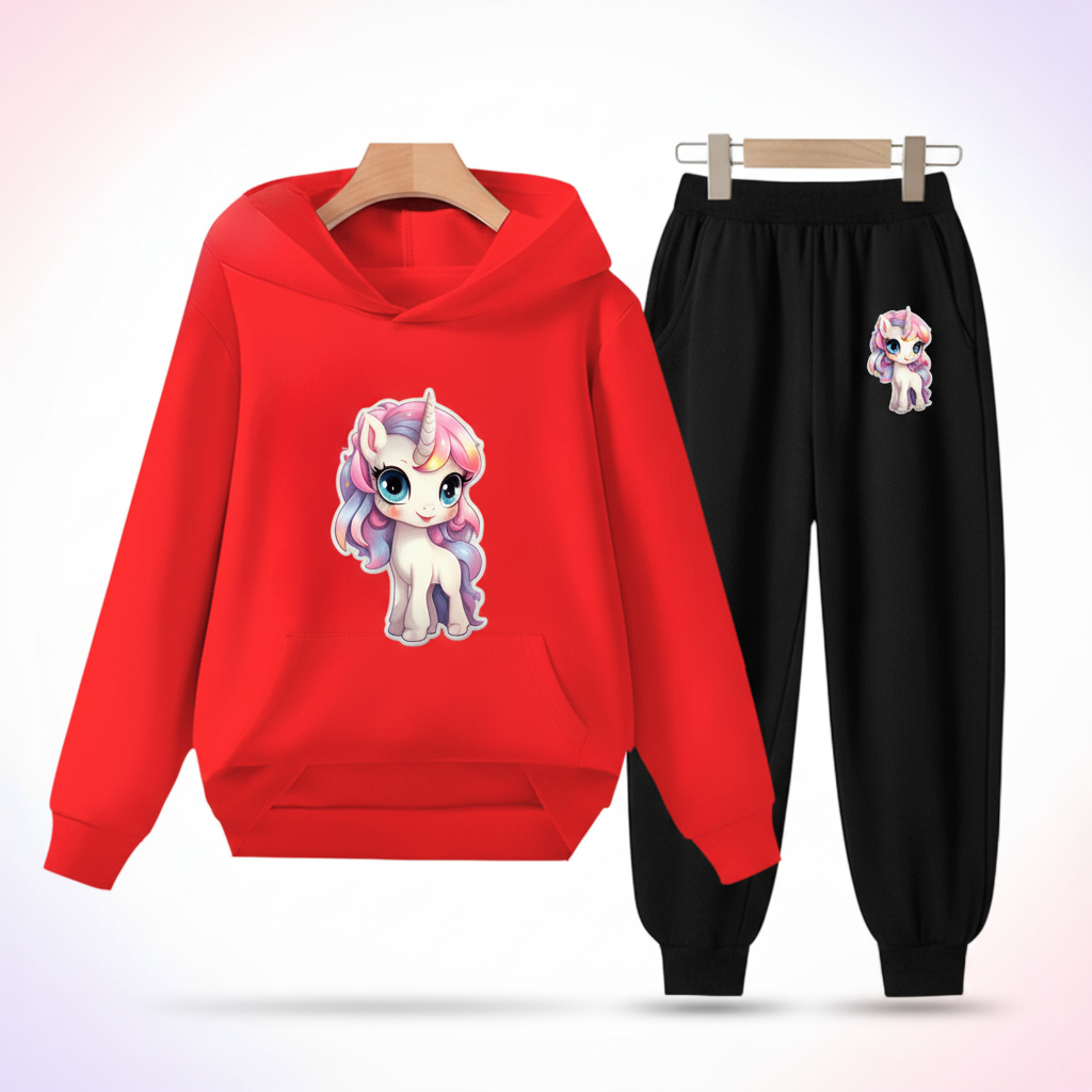 Red Unicorn Hoodie Kids Set